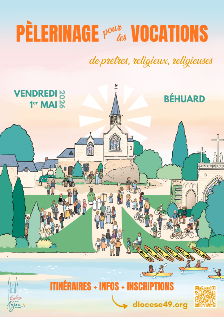 À l’invitation de notre évêque, Monseigneur Delmas, venons vivre une journée de prière pour les vocations des prêtres et des religieux et religieuses pour notre diocèse le vendredi 1er mai 2026 à Béhuard.